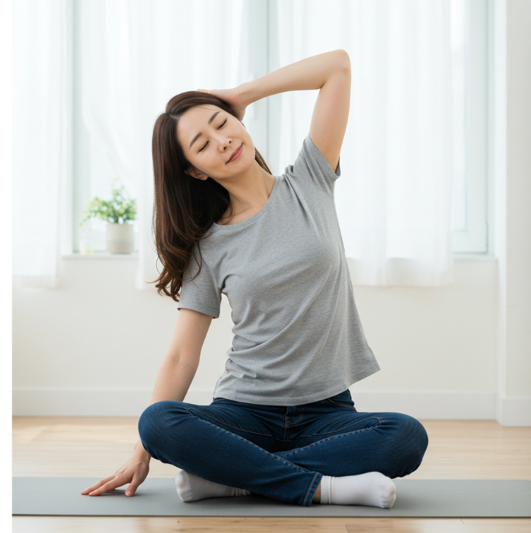 - 목 스트레칭: 고개를 천천히 좌우로 돌리거나, 어깨를 으쓱하며 근육을 이완하세요. 하루 5~10분, 부드럽게 움직이는 것이 중요합니다.